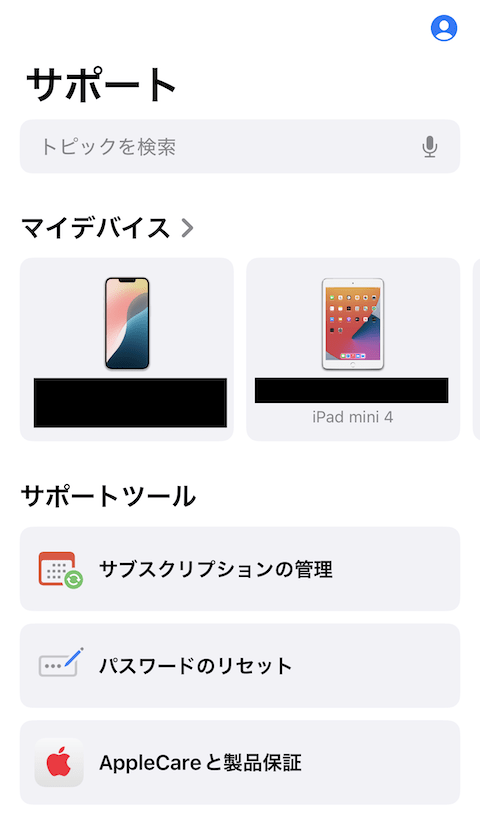 iPhoneをお持ちの場合はApple公式のサポートアプリを、持っていない場合はSafariなどで以下の公式ページにアクセスし、ページ内の 「お手続きはこちら」から操作を進めてください。