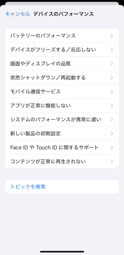 すると、これまでは表示されていなかった「Appleのサポートで診断を開始」という項目が追加されているので、タップして進めていきます。