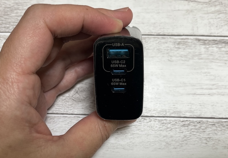 スペック上は「65W」と記載されていますが、これはあくまで1ポート(USB-C単体)使用時の最大値です。2〜3台同時充電では、出力がポートごとに自動で振り分けられるため、最大出力は下がります。